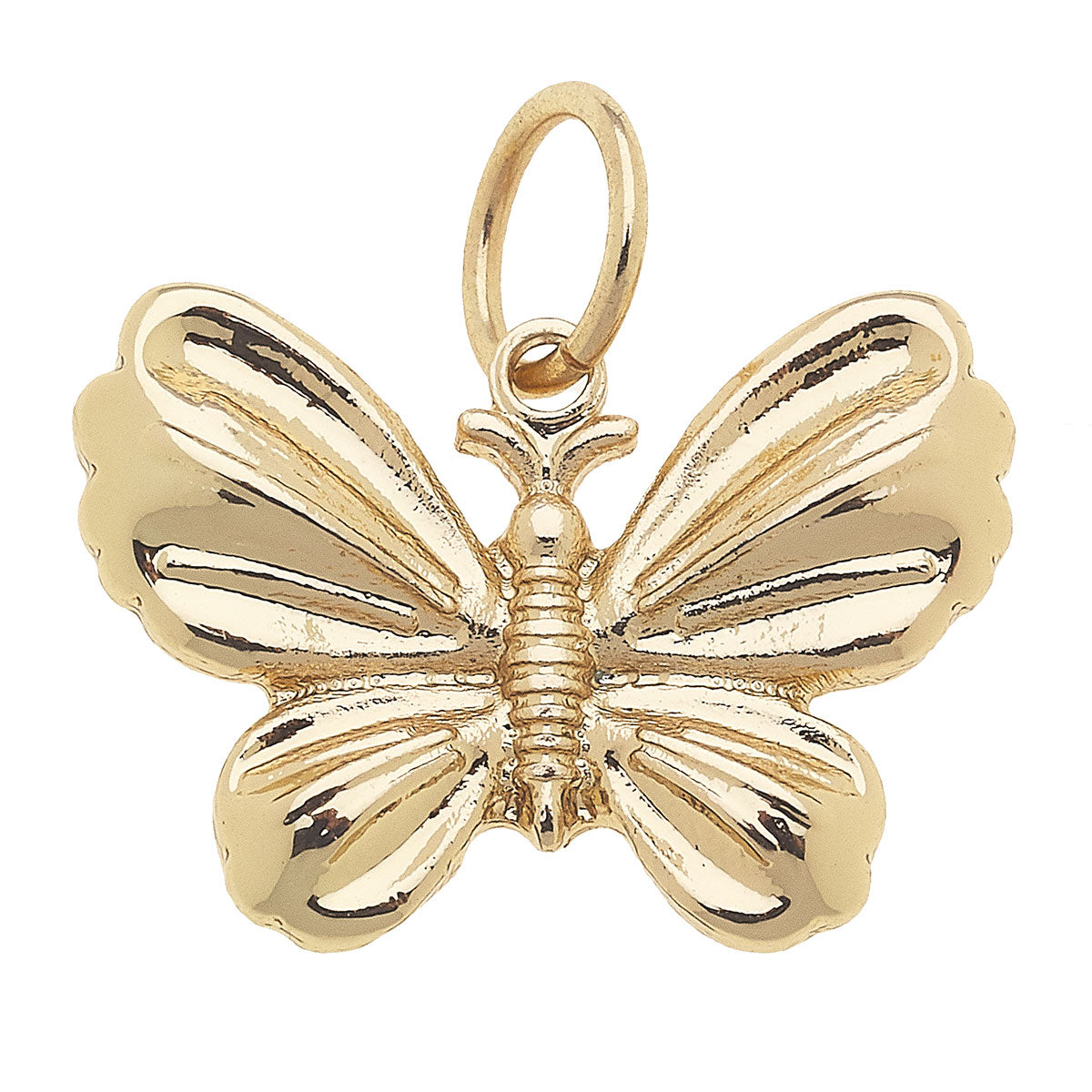Delicate and free-spirited, this shiny gold Butterfly Charm adds an air of grace and transformation to your collection. A stunning emblem of new beginnings. Show off your unique style by mixing and matching this charm with others and adding it to a charm necklace or bracelet (sold separately).