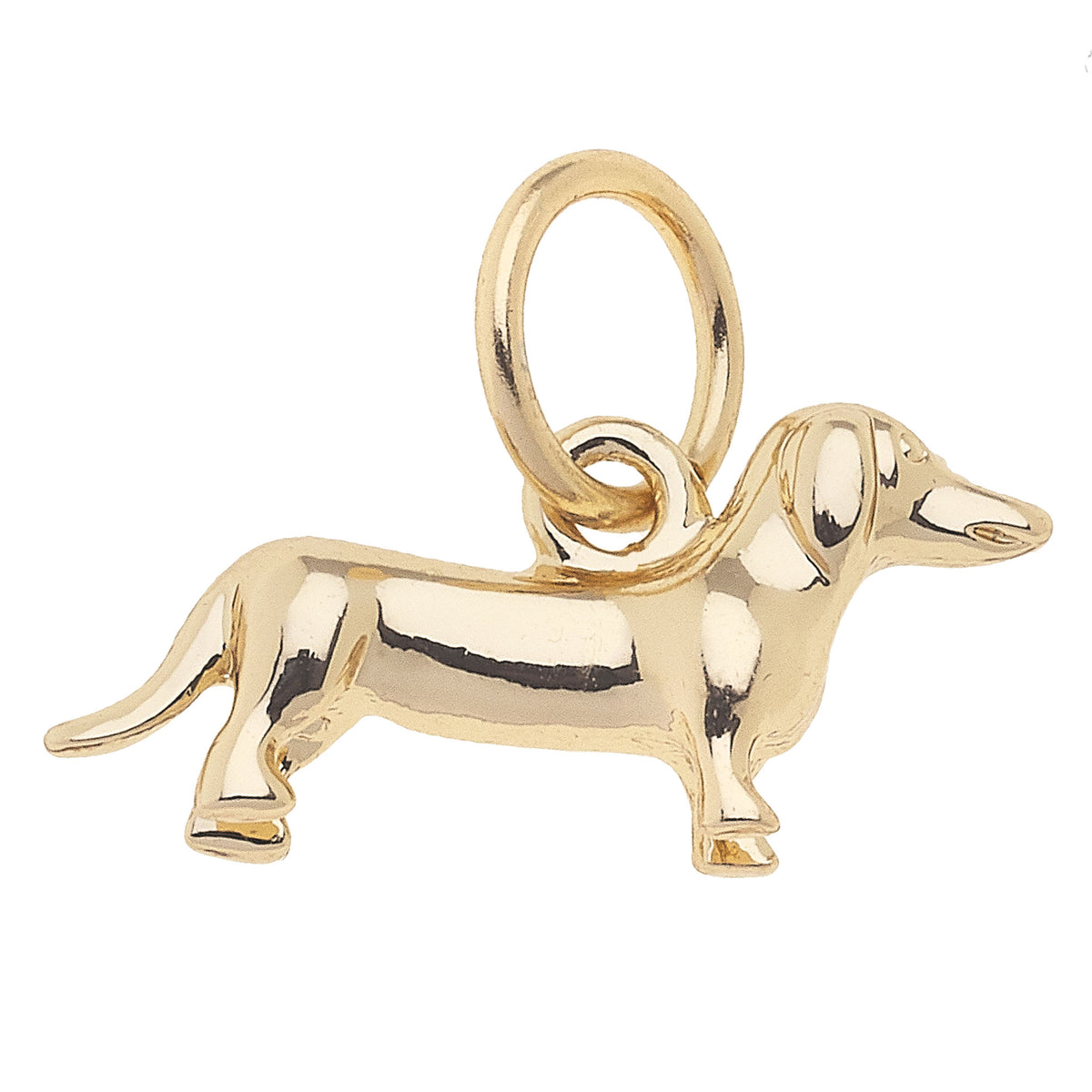 The Dachshund Dog Charm in Shiny Gold features a detailed and cute dachshund dog design in polished gold. This charm is perfect for dog lovers and adds a playful touch to your collection.