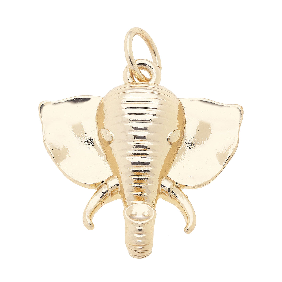 The Elephant Head Charm in Shiny Gold features a detailed elephant head design in polished gold. This charm symbolizes strength, wisdom, and good luck, making it a meaningful addition to your jewelry.