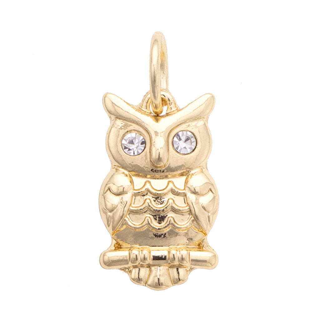 Wise and whimsical, this shiny gold owl charm adds character to your jewelry collection. Perfect for nature lovers and night owls alike.