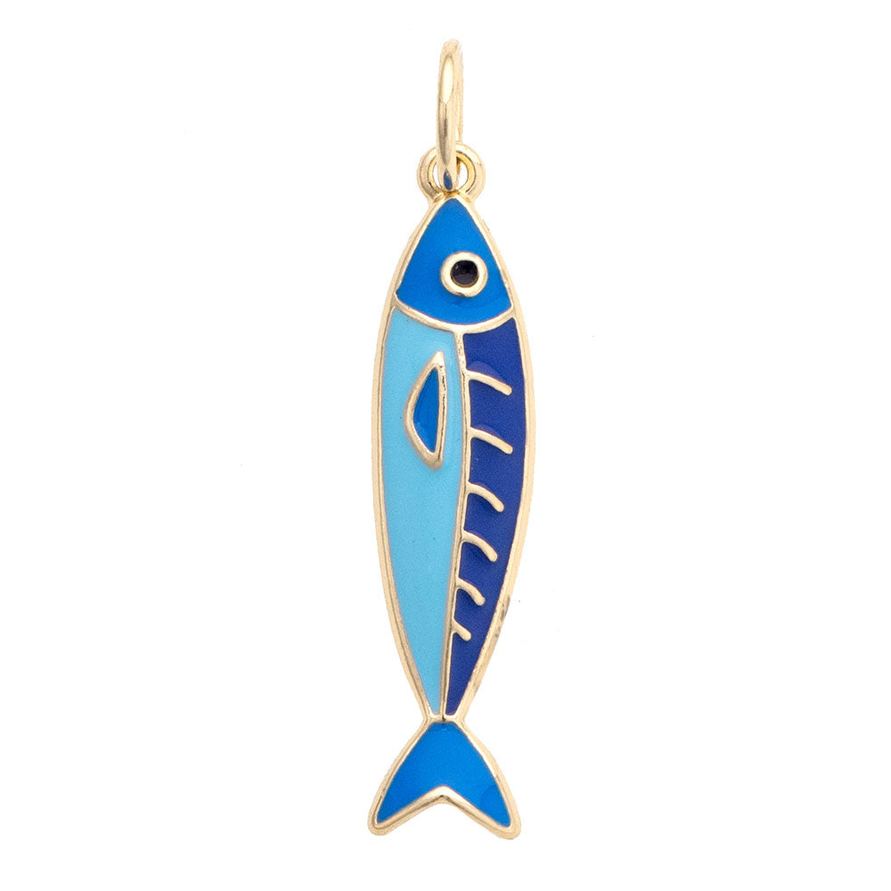 Quirky and colorful, this blue sardine charm makes a playful statement. A fun nod to seaside adventures.