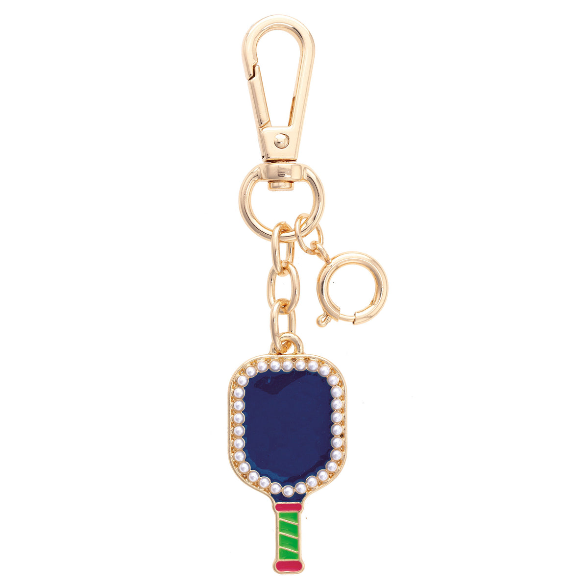Pearl Studded Pickleball Paddle Bag Charm in Navy