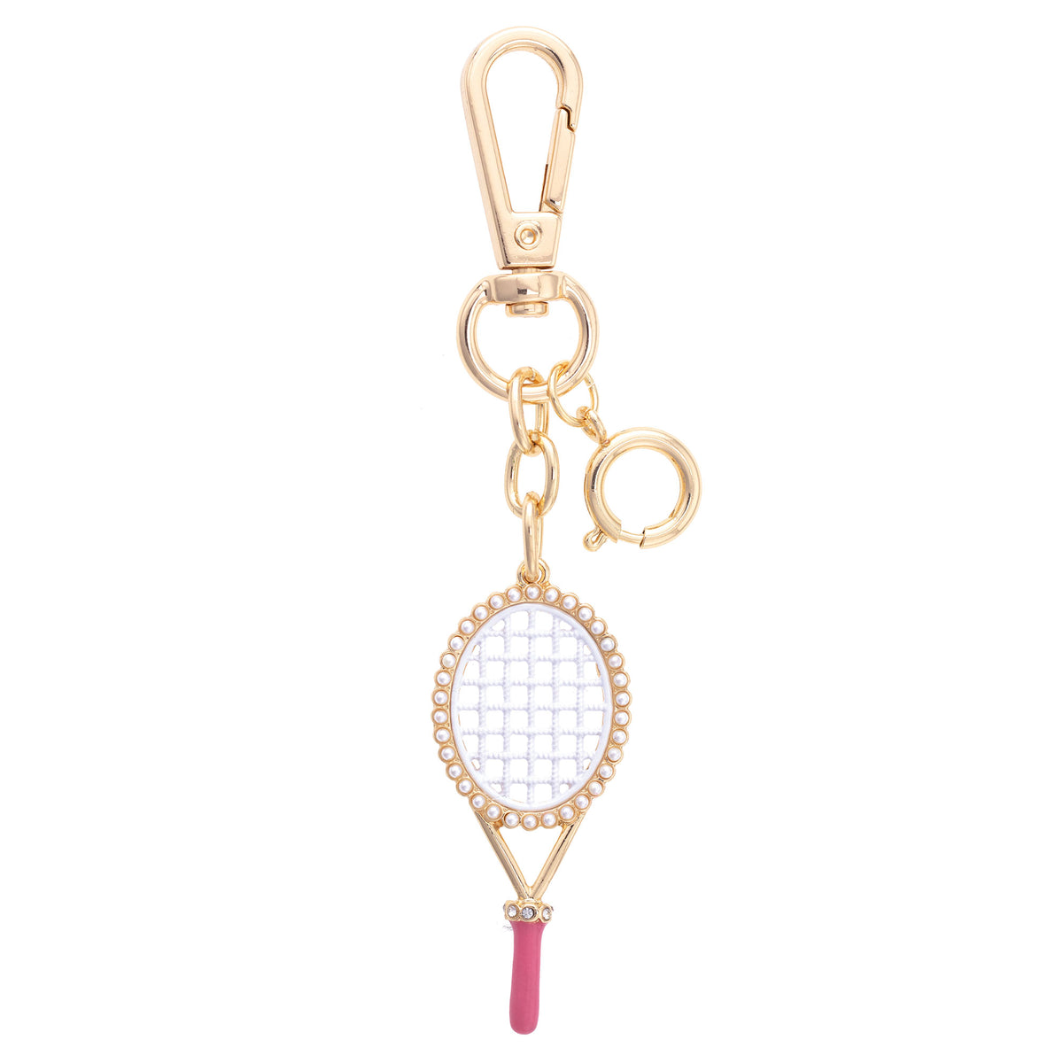 Pearl Studded Tennis Racket Bag Charm in Pink