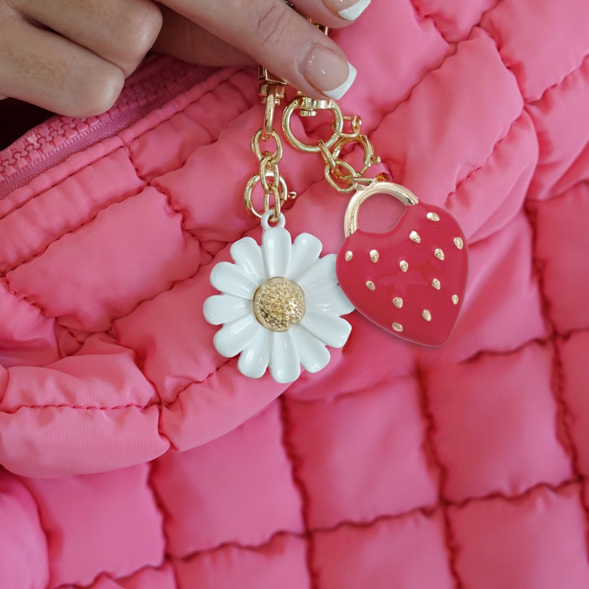 Berry cute and totally secure, this red strawberry-shaped padlock charm adds a playful pop to your bag while keeping your look totally locked in.