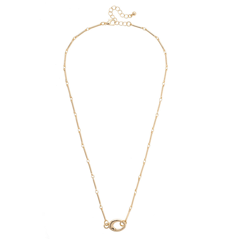 A chunky link chain in shiny gold finished with a stylish clasp detail. It’s the perfect statement piece to elevate your day-to-night look.