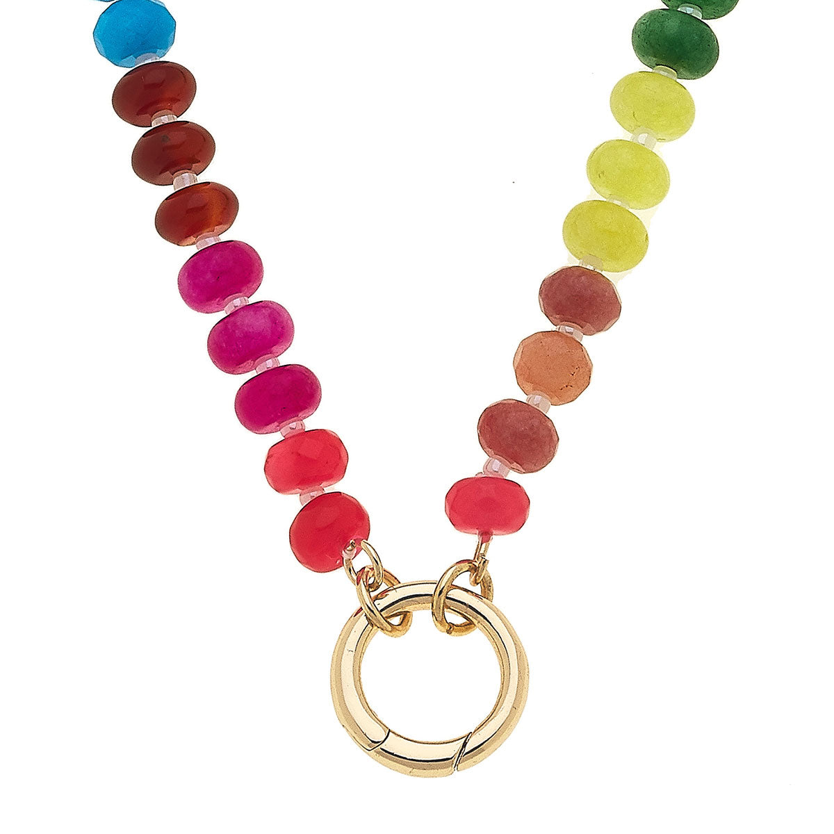 Lucy Gemstone Beaded Charm Necklace Base in Rainbow Multi