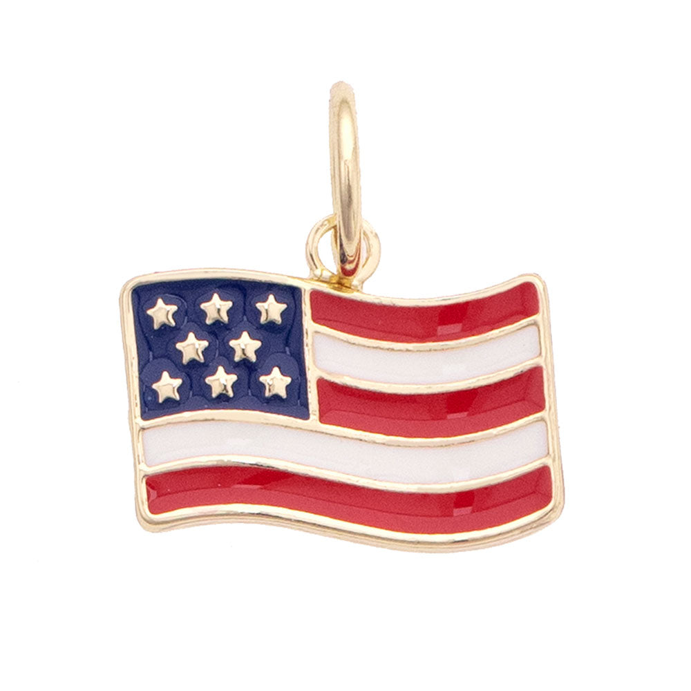 Show your patriotic side with this red and blue American flag charm. Perfect for holiday outfits or everyday pride.