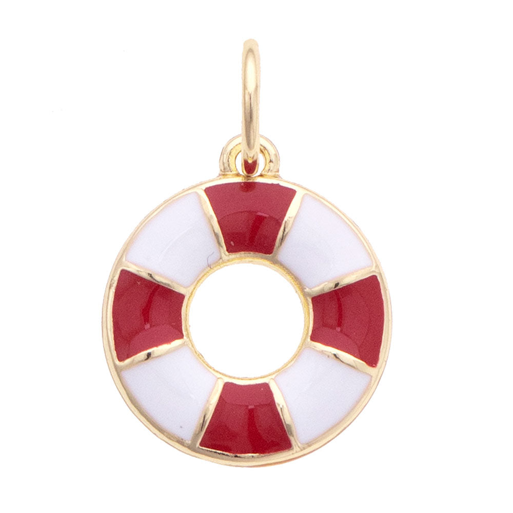 Add nautical vibes to your look with this red and white life ring charm. A playful reminder of sunny days by the water.