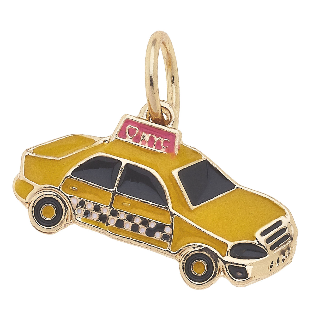 The NYC Taxi Charm in Yellow features a detailed yellow taxi design, representing the iconic New York City experience. This charm adds a fun and urban touch to your jewelry.