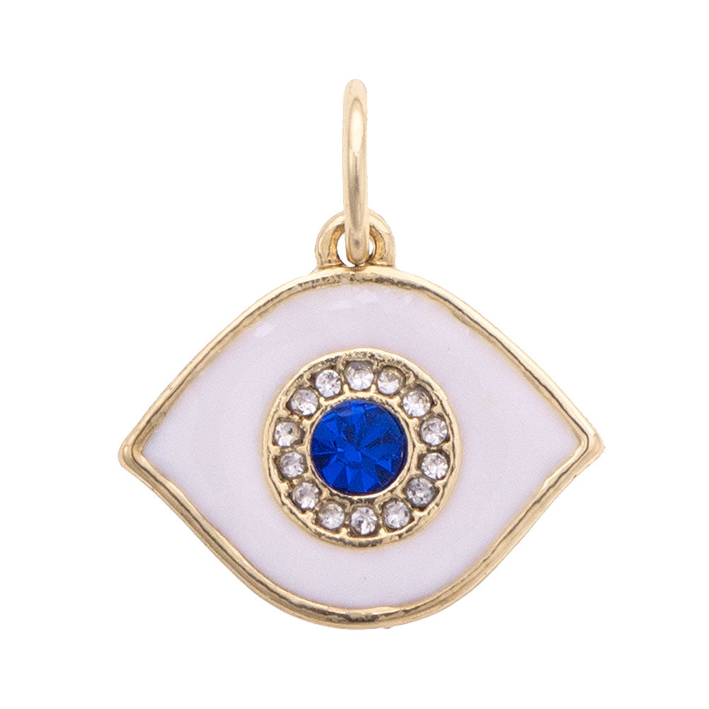 Bright and protective, this white rhinestone evil eye charm adds a hint of shimmer and good luck to your accessories.