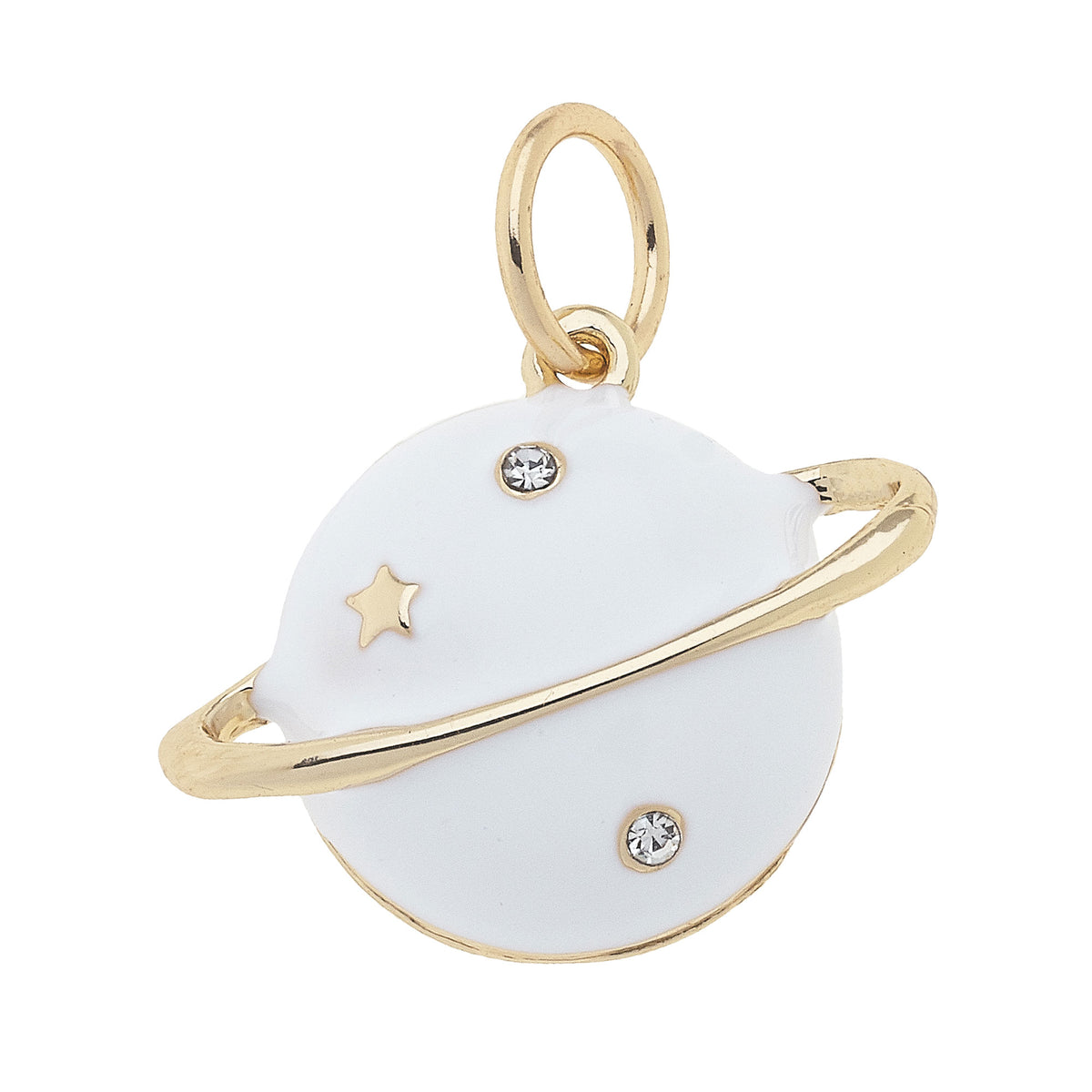 Saturn Rhinestone Planet Charm in White