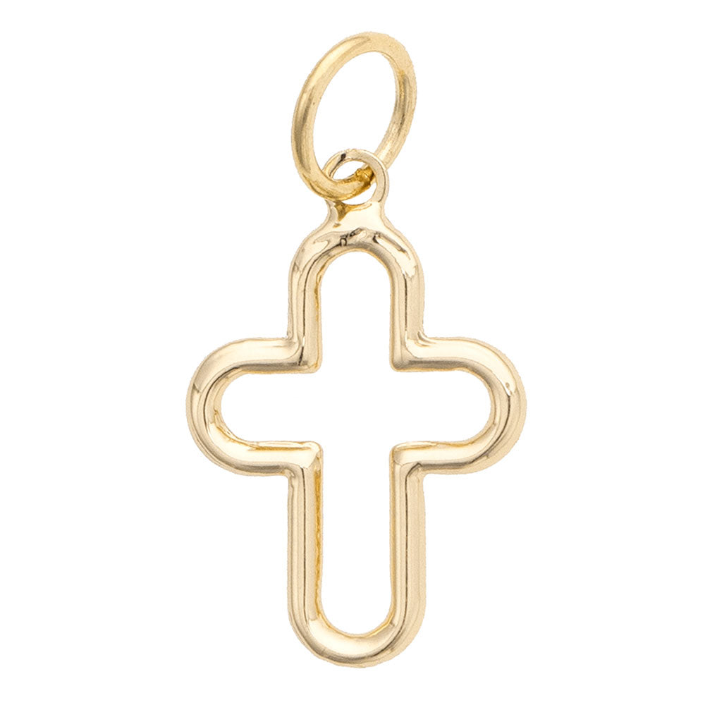 This playful bubble cross charm in shiny gold offers a fun twist on a classic symbol. Lighthearted yet stylish for everyday wear.