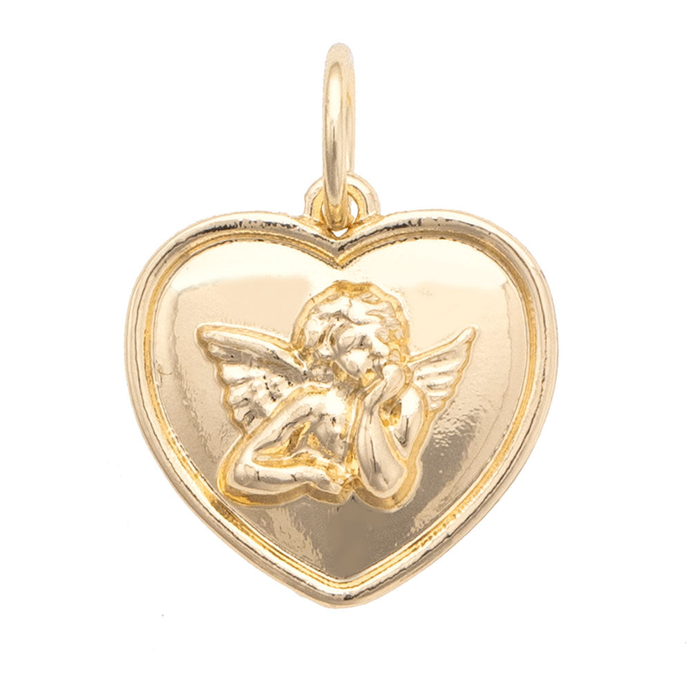 Cherub Heart Charm in Shiny Gold
