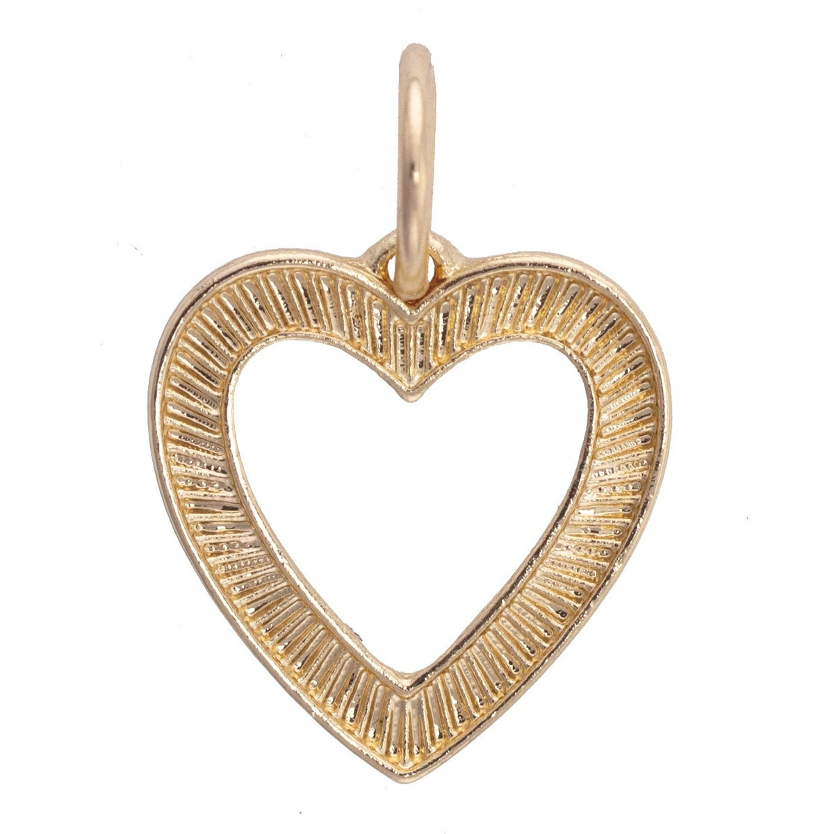 Classic with a twist, our Fluted Open Heart Charm in Shiny Gold features a textured heart outline that adds elegant dimension to your charm stack. Timeless, romantic, and oh-so-pretty.