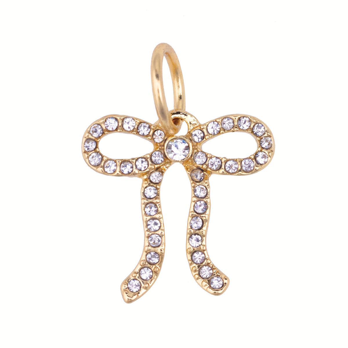 Rhinestone Ribbon Bow Charm in Shiny Gold