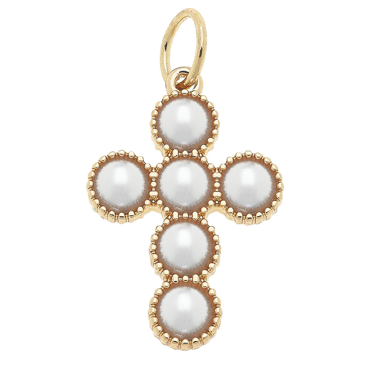 Pearl Cross Charm in Shiny Gold