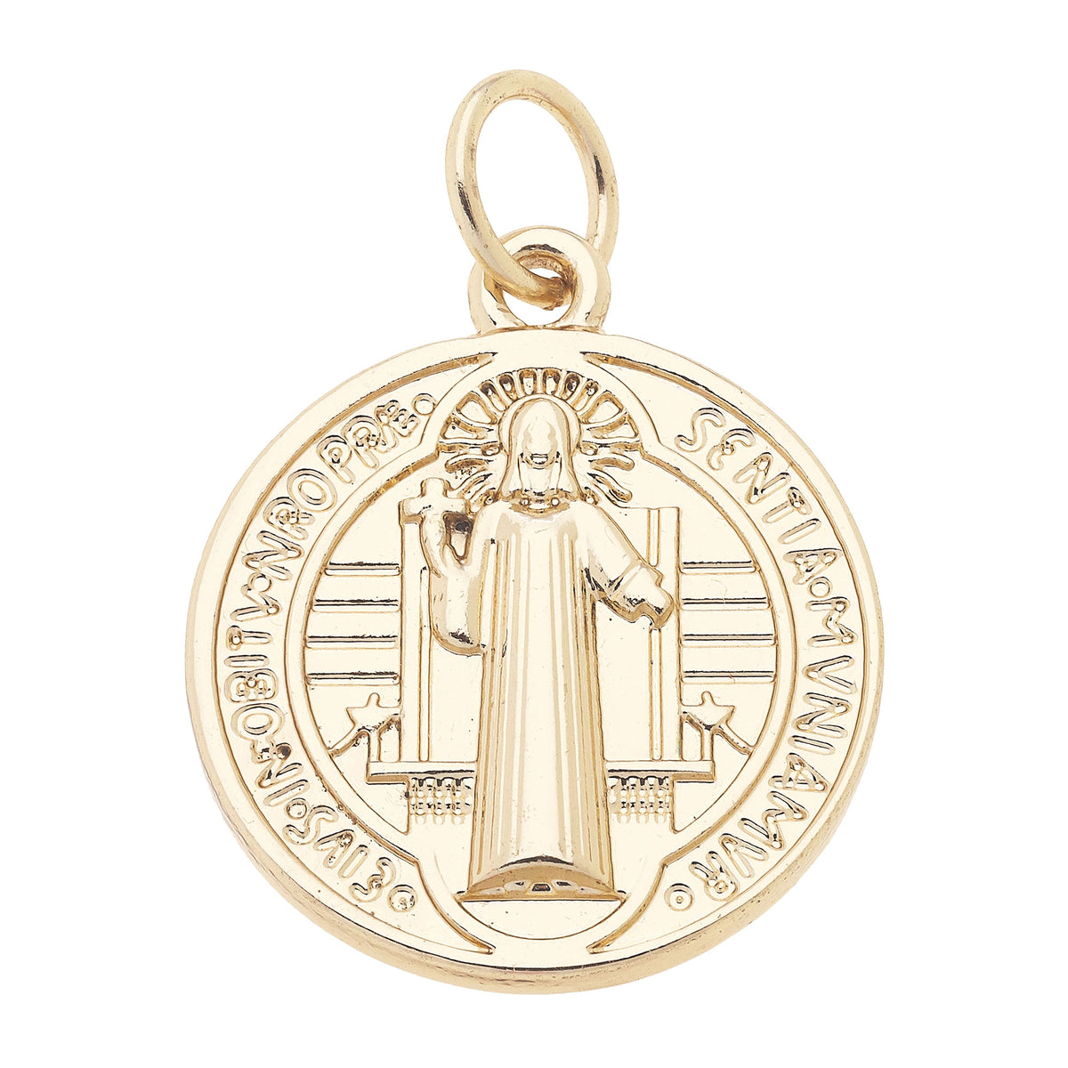 Saint Benedict Double Sided Coin Charm in Shiny Gold
