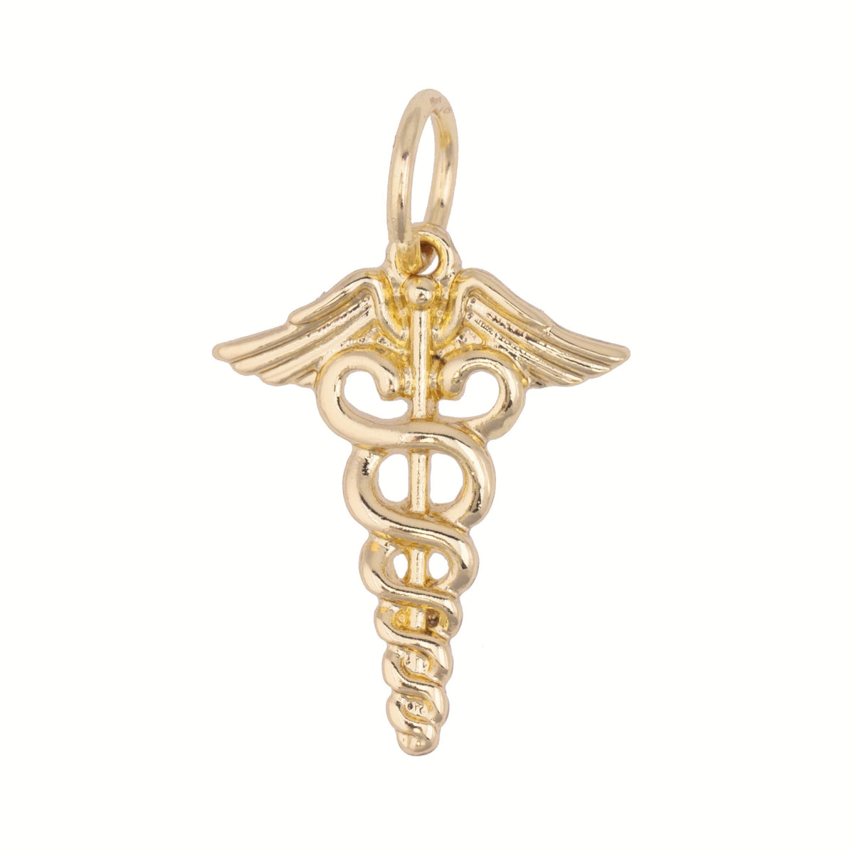 Honor the healing profession with the Caduceus Charm in Shiny Gold. Featuring the traditional symbol of medicine, this charm is perfect for healthcare professionals or anyone who admires the medical field.