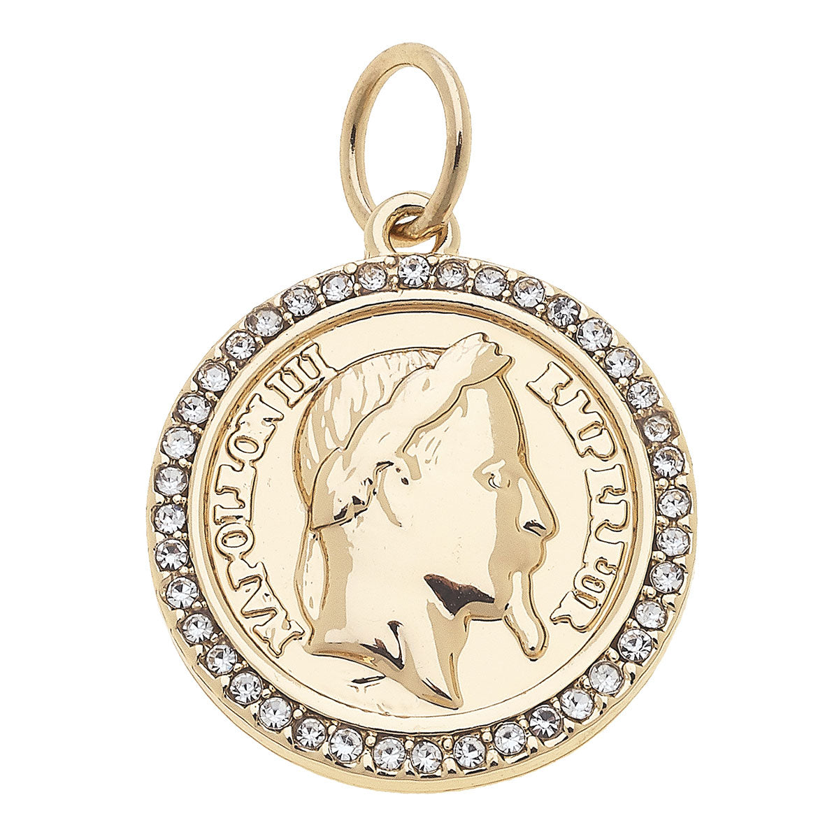 Pave Coin Charm in Shiny Gold