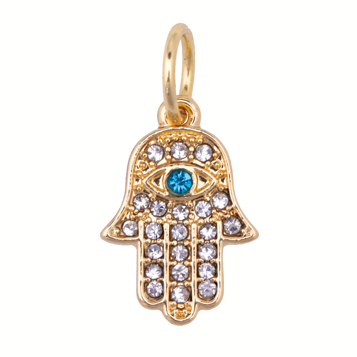 Embrace protection and positivity with the Pave Hamsa Charm in Shiny Gold. Featuring the Hamsa symbol encrusted with sparkling pavé stones, this charm is believed to bring good fortune and ward off negativity.