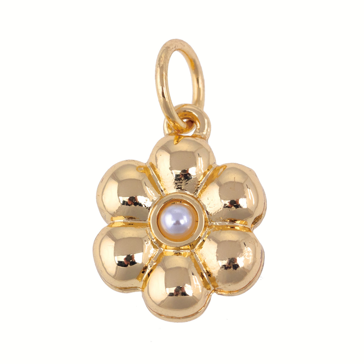 Puffy Pearl Flower Charm in Shiny Gold