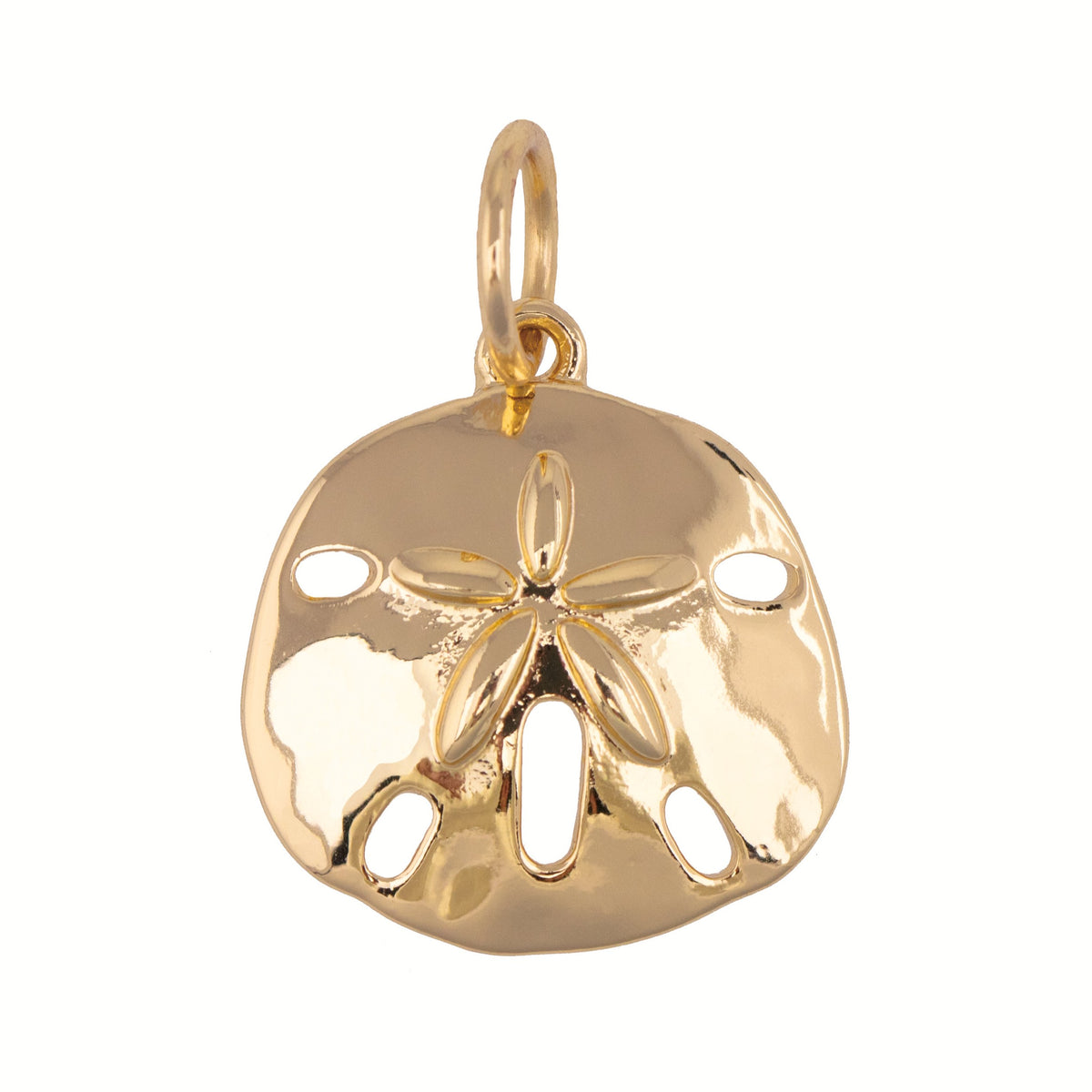 Bring beachy vibes wherever you go with the Sand Dollar Charm in Shiny Gold. Inspired by coastal treasures, this charm is your golden ticket to summer style.