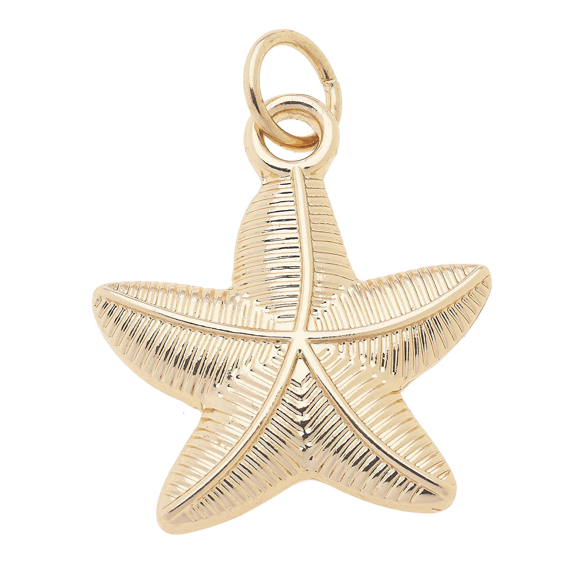The Starfish Charm in Shiny Gold features a detailed starfish design in polished gold. This charm evokes coastal, beachy vibes and is perfect for adding a natural, oceanic touch to your jewelry.