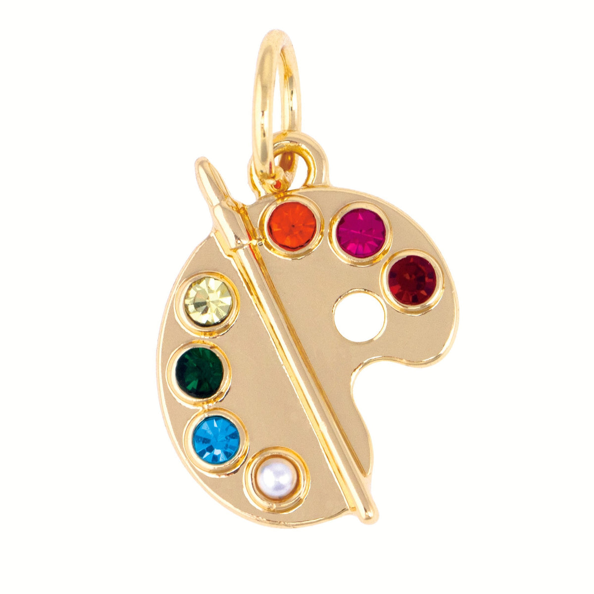 Celebrate your creative spirit with this Artist Palette Charm in Shiny Gold. Featuring a miniature artist's palette adorned with vibrant enamel accents, it's the perfect addition to any charm collection. Ideal for artists, art enthusiasts, or anyone who loves to express themselves through color.