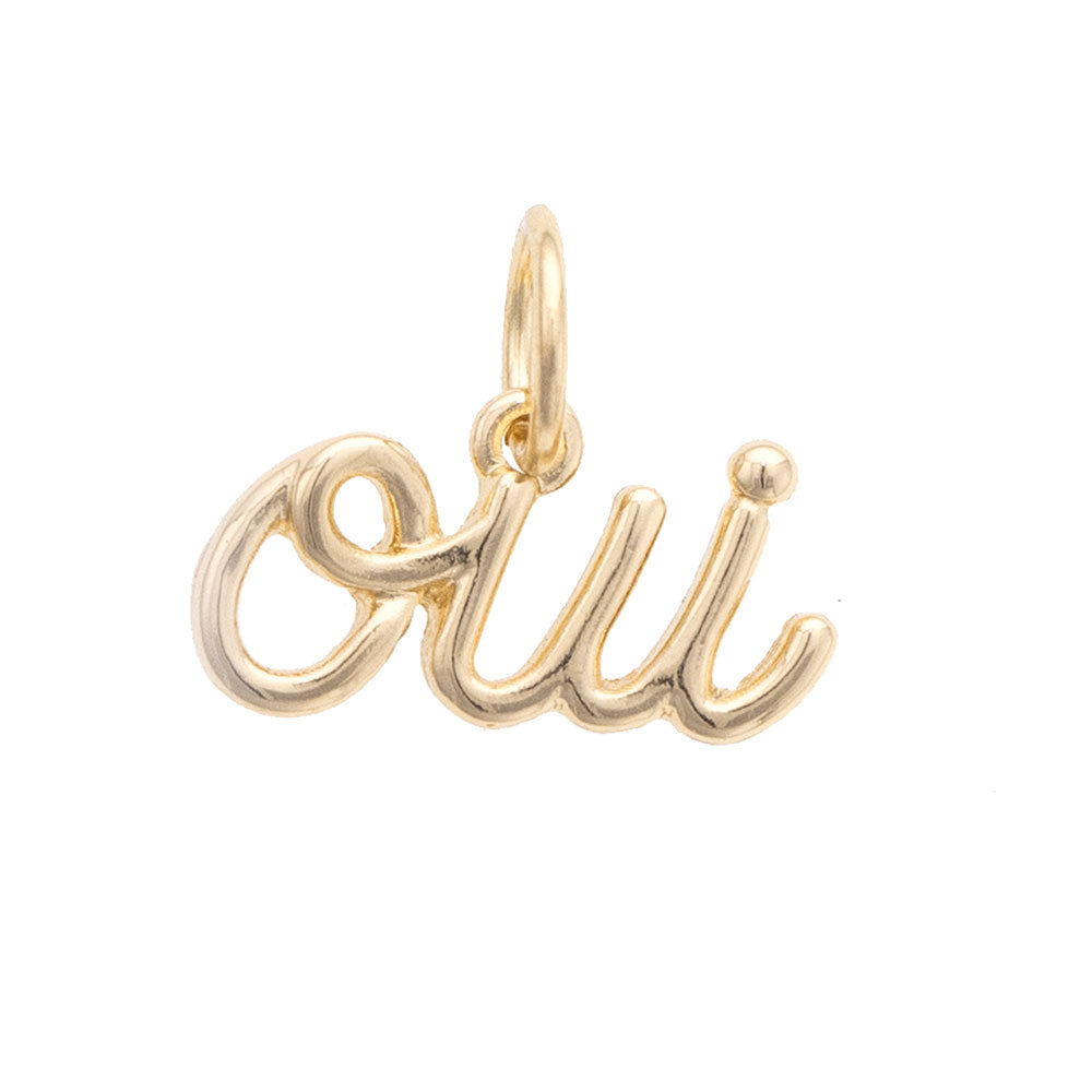 Keep things positive with this cursive “Qui” charm in shiny gold. Its simple design makes it a versatile everyday piece.